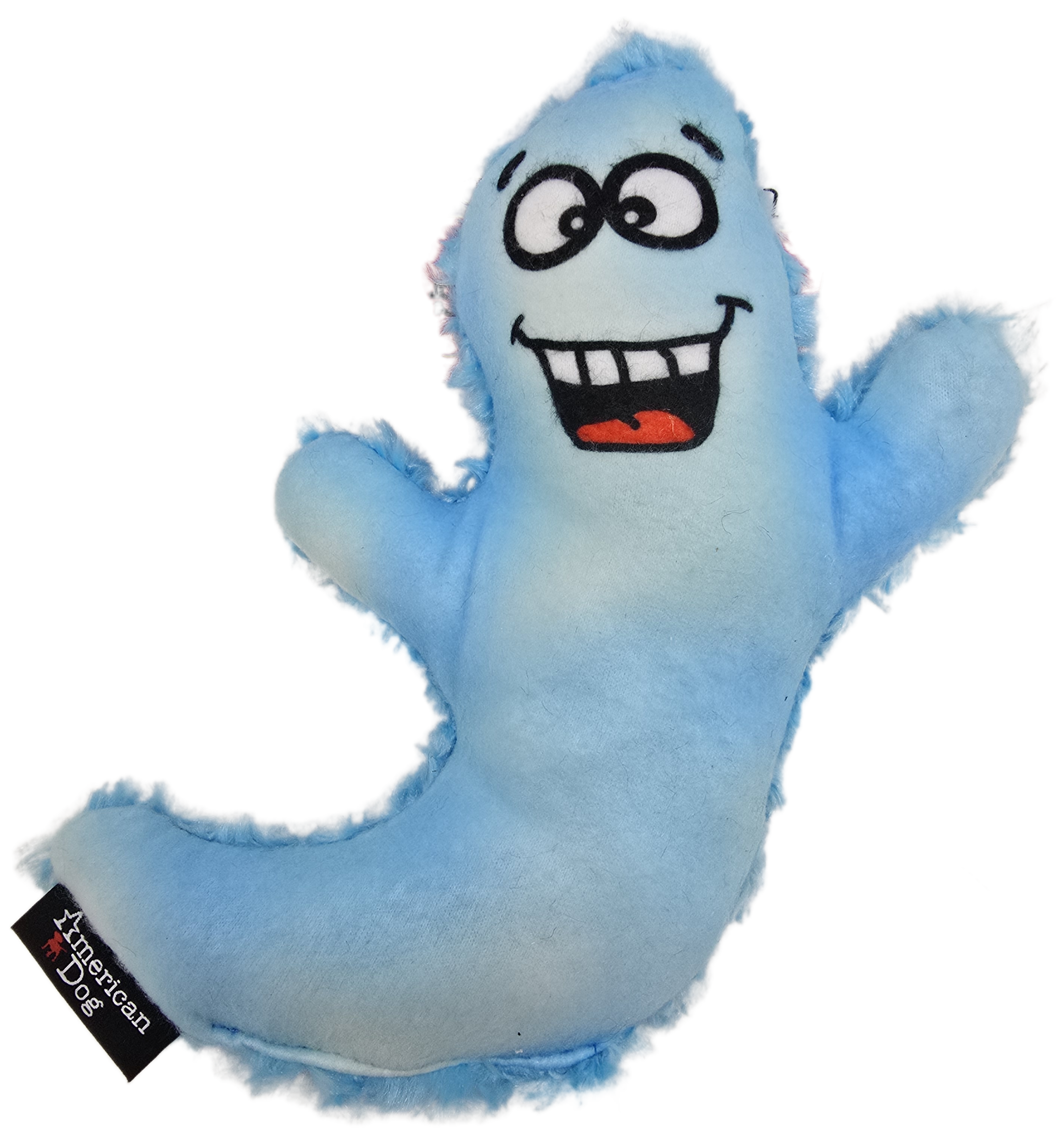 Bring some spooky fun to your pup’s playtime with the American Dog Plushie Ghost Tug Dog Toy! The light blue plush ghost shape with a fun printed cartoon face that dogs (and humans) love. This toy is great for tugging, tossing and light chewing with a squeaker inside to make the toy extra exciting. Perfect for bonding time with your furry friend. This ghost plushie tug has durable stitching to withstand enthusiastic play. Made with dog-safe fabrics and stuffing, gentle of your dogs mouth with the soft fabric, but tough enough for everyday play. Proudly manufactured in the United States for higher safety and quality control.