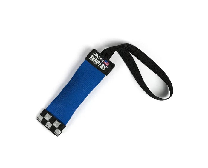 The MINI SQWUGGIE is simply the smaller version of the classic Sqwuggie and was made for smaller dogs to be able to bite down and hold onto a bumper that fits their mouth. Its design was first developed by Katie’s Bumpers and has been around for many years. It is now a classic and a favorite among dog lovers! It includes squeakers for added enrichment. It features a sewn-in loop on top that make it great for tossing during fetching and holding during tugging for greater interaction and fun with your pup. This long-lasting toy is great for play time and training on land, water, or snow.