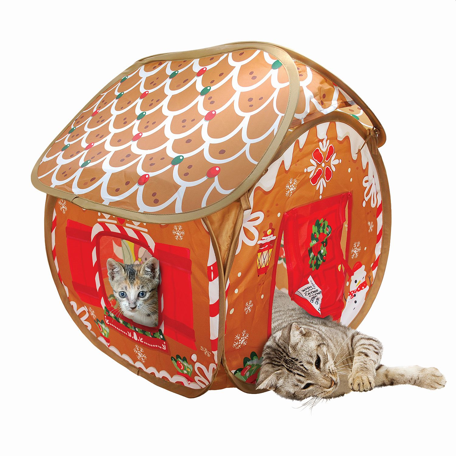 A tiny house just for your kitty, KONG PlaySpaces Gingerbread Bungalow is an adorable hideaway where your cat can satisfy natural instincts to curl up in a cozy spot. Windows pique hide-and-seek curiosities and a springy toy sparks batting and pouncing for healthy active play. An added bonus is the Bungalow’s collapsible design for easy assembly & storage. Measures 16.2 x 16.2 x 16.2 inches