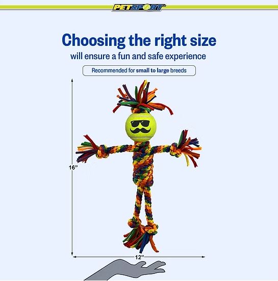 Kaleidoscope Rope Dude w/ Tuff Ball is made for small to large dogs.