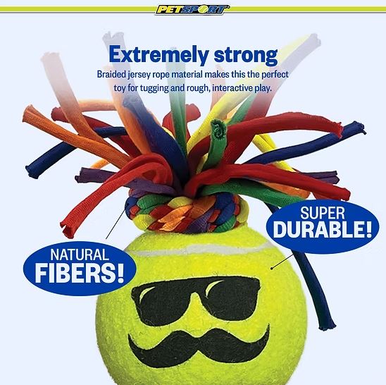The Petsport Kaleidoscope Rope Dude Ball Dog Toy is a super strong tug toy made with premium braided cotton rope and includes a 2.5″ Tuff Ball. This 16″ rope tug is extremely durable so they’re perfect for heavy chewers, teething puppies and dogs who love tug-of-war. The colorful fibers also help keep teeth & gums healthy. This toy handles it all!