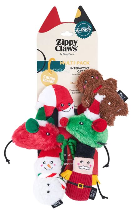 The ZippyPaws ZippyClaws Holiday 6 Pack Festive Cheer Cat Toy is designed to pique your cat’s interest and stimulate their senses. Featuring a variety of features like crinkle, catnip, bells, and curled ribbon, and a variety of fabrics and textures, these toys are likely to trigger instinctive behaviors like chasing, stalking, pouncing, and biting.